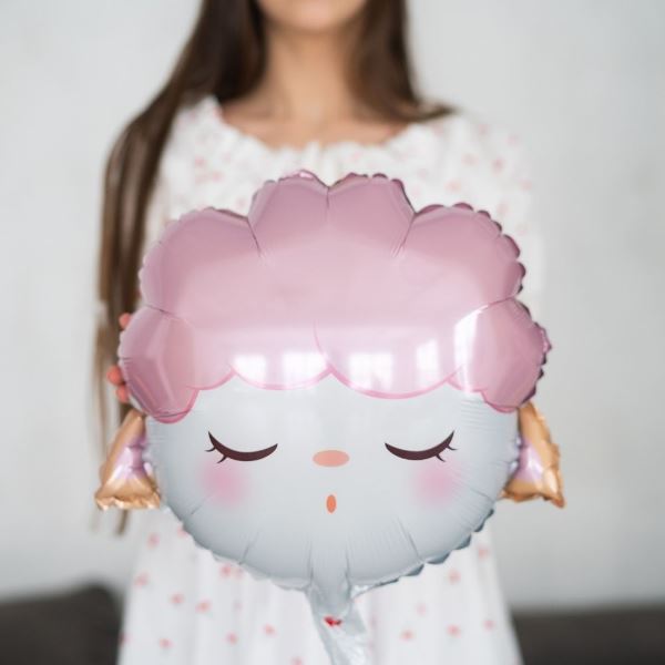 Шарик-фигура в форме головы овечки для детского праздника или дня рождения, украшения интерьера, стола с угощениями, фотозоны, конкурсов. Фольгированный шар надувается через встроенный обратный клапан, может использоваться многократно. Хорошо сочетается с белыми и розовыми латексными шарами. Размер: 19''/49см. Тематика: животные