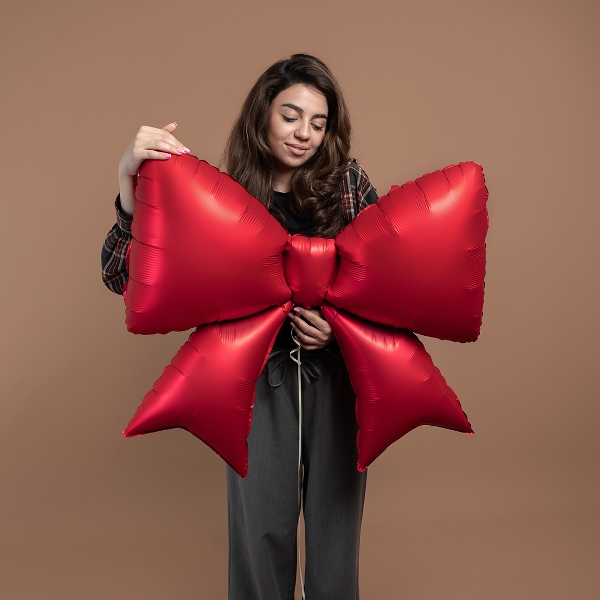 Фольгированный шар фигура БАНТ красный сатин 39"/99 см