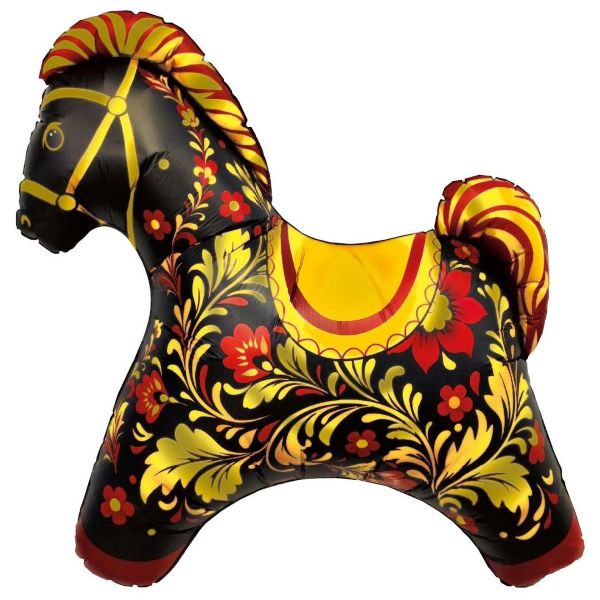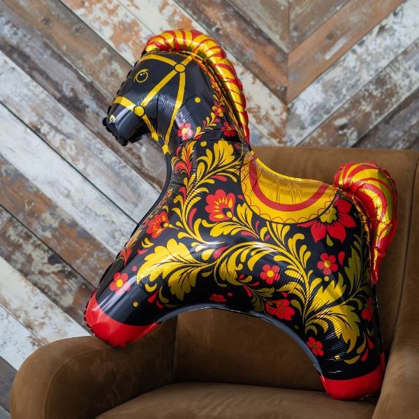 Фольгированный шар фигура Лошадка красная Золотая роспись 80х81см