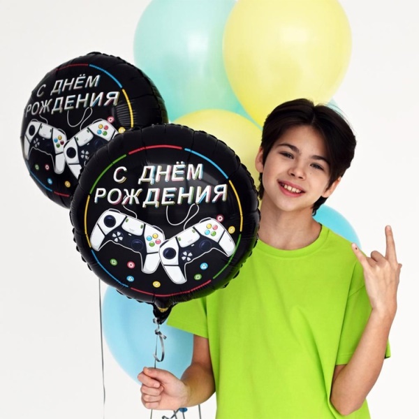 Фольгированный шар Круг ДР GAME ON 18"/45 см