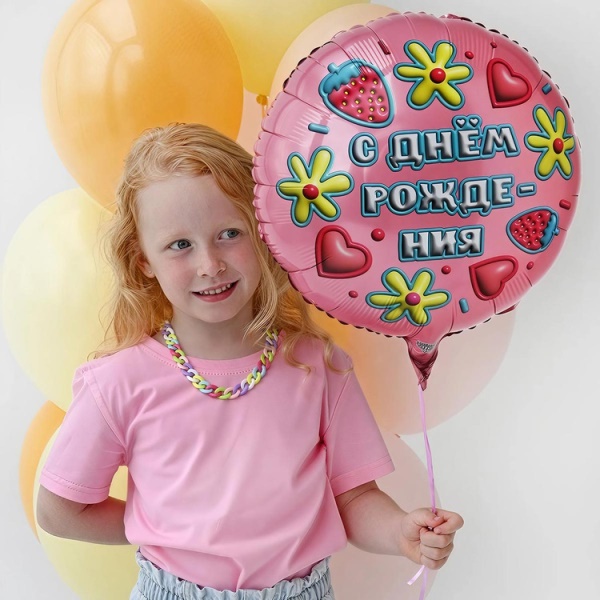Яркий фольгированный шар круг на день рождения, украшенный объемной надписью, имитирующей глазурь. Диаметр шара – 45 см. Отличный способ добавить праздничного настроения имениннику! Тематика: шары на день рождения, воздушные шары для девочк, шары для девочки, шары для дочери, дочке