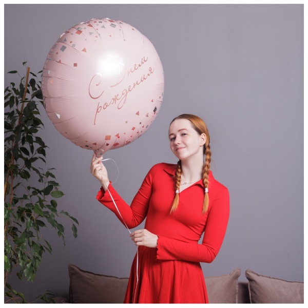 Фольгированный шар Круг СДР Конфетти Parti розовый 31"/79 см