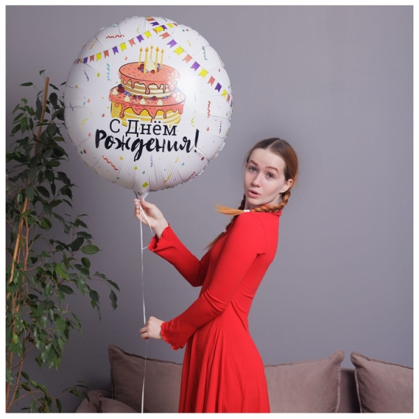 Фольгированный шар Круг СДР Торт Праздничный 31"/79 см