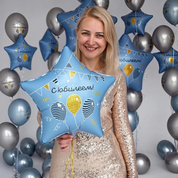 Фольгированный шар Звезда С ЮБИЛЕЕМ гирлянды шары 18"/45 см