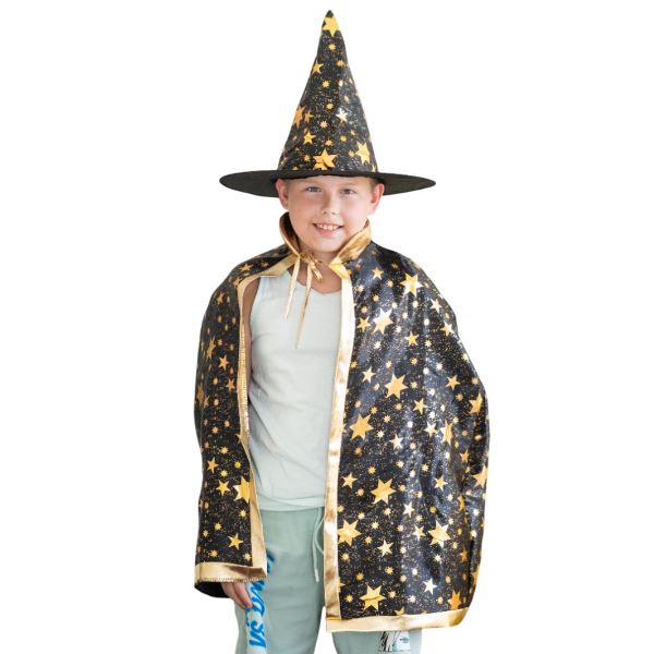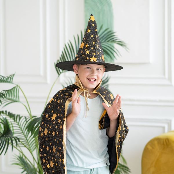Карнавальный костюм Волшебника звезды черный (шляпа+плащ)