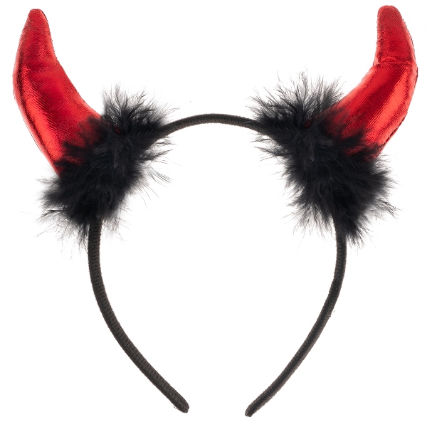 Карнавальный ободок Рожки Чертенка красный/черный металлик