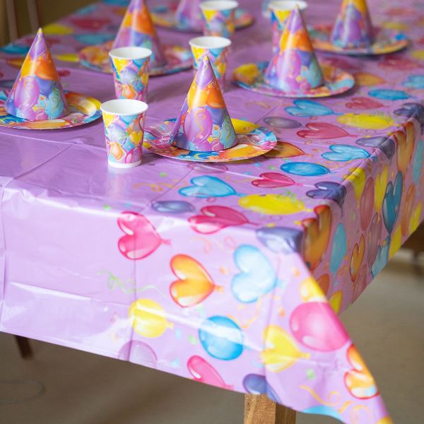 Скатерть полиэтиленовая, размером 140х180см. Данная скатерть входит в состав коллекции праздничной одноразовой посуды "Праздничное настроение" и лучше всего использовать ее для сервировки праздничного стола вместе с другими элементами из этой коллекции (тарелочки, стаканчики и карнавальные аксессуары коллекции "Праздничное настроение").