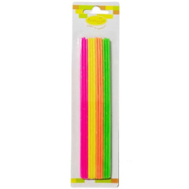 Длинные свечи в расцветке Неон и в форме спирали для десертов на различных мероприятиях. Украсить такими свечками можно как один большой торт, так и использовать по одной свече-спирали для пирожных, трайфлов, капкейков. Красивая расцветка и оригинальная форма создают праздничное настроение и эффектно смотрятся на фото. Изготовлены из парафина. В наборе предусмотрены пластиковые держатели. В комплекте 12 штук. Размер: 10 см. Свечи из коллекций: свечи на торт, свечи для торта, набор свечей