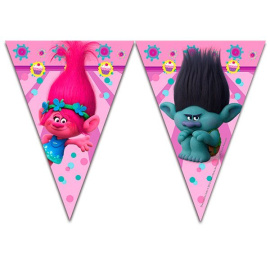 Красочные ламинированные тарелки с персонажами мультфильма "Тролли". Яркий декор для детского праздника.
