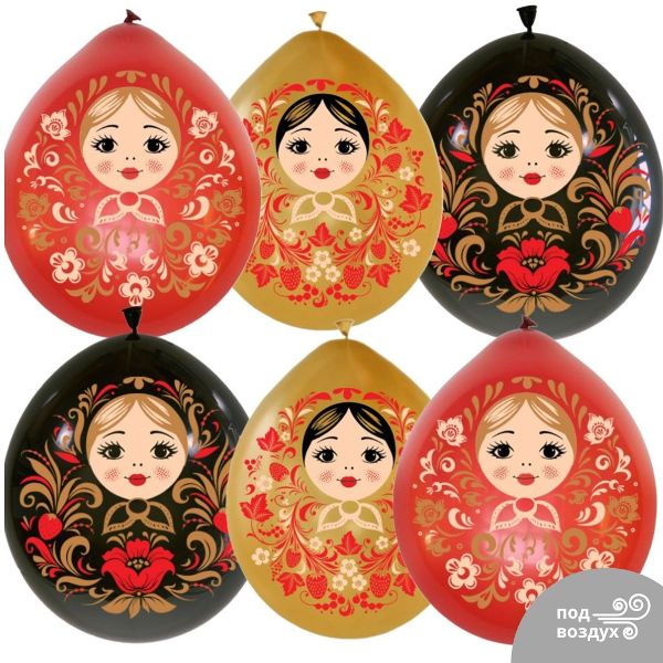 Воздушные шары 12"/30см ассорти рис. Матрешки