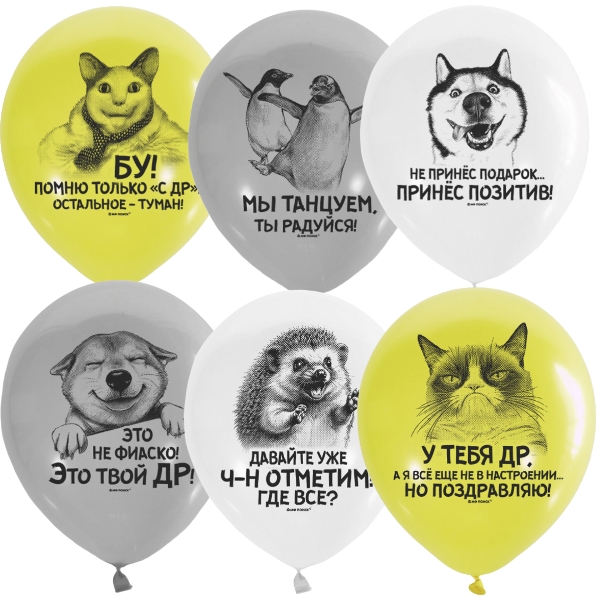 Воздушные шары 12"/30см ассорти рис. СДР Мемы