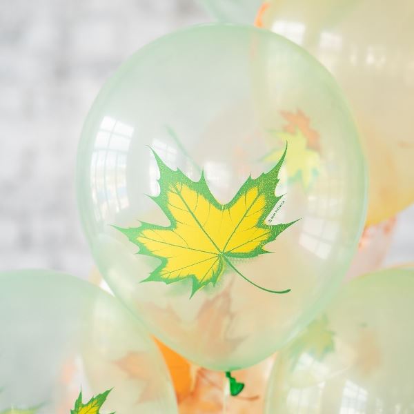 Прозрачные шары типа кристалл с изображениями кленовых листьев. Эффект прозрачности придает воздушным шарикам дополнительный объем. Надувные шары украсят интерьер актового зала на осеннем балу в школе, дополнят сцену или фотозону, группу в детском саду на утреннике. В наборе 25 штук. Размер: 12"/30 см. Производитель: Latex Occidental. Бренд: Globos Payaso (Глобос Паясо). Шары на 1 сентября, день знаний, шары для оформления школы, шары для офрмления десткого сада